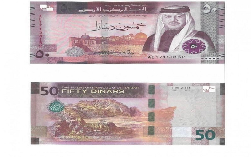 نيسان ـ صرح البنك المركزي الأردني الأحد، أنه سيبدأ بطرح فئة الخمسين دينار الإصدار الخامس في التداول والتي يزين وجهها صورة جلالة الملك عبد الله الثاني ابن الحسين، اعتباراً من اليوم الموافق 5 شباط 2023 جنباً إلى جنب مع فئة الخمسين دينار الإصدار الرابع.