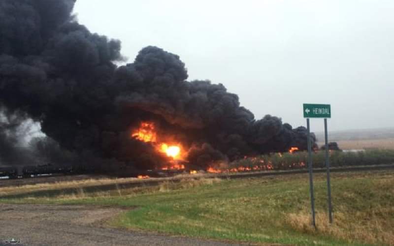 حريق هائل بخروج قطار عن مساره شمال أمريكا