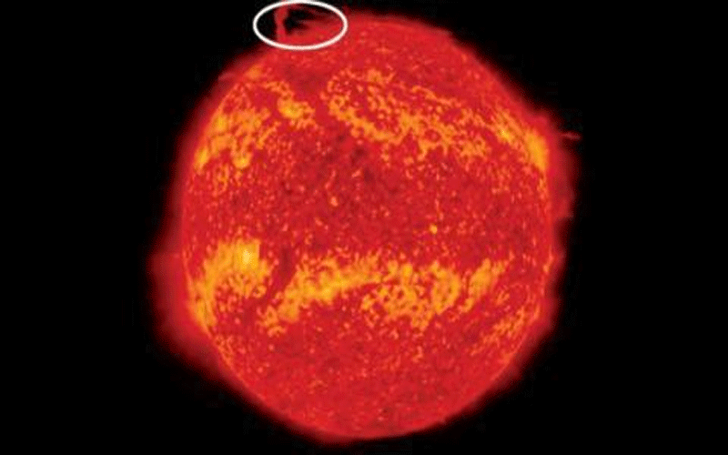 نتيجة لذلك، فإن ظهور خيط - يعرف أيضاً بالبروز الشمسي - حول القطب الشمالي للشمس ليس جديراً بالملاحظة بشكل خاص، وحقيقة أنه بعد ذلك «انفصل» أمر غير معتاد للغاية.