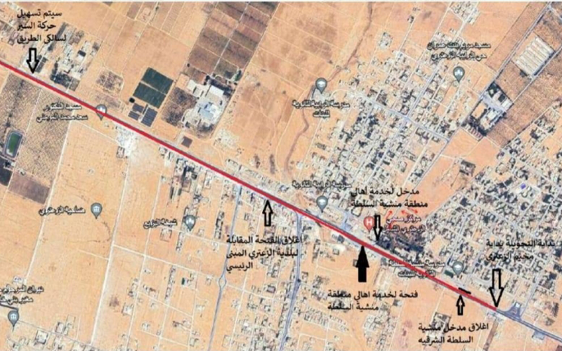 وذكرت الوزارة في بيان صحفي، اليوم الجمعة، أنه سيتم تحويل سير المركبات على الطريق إلى المسرب الأيمن من الطريق، وإغلاق المسرب الآخر (منطقة العمل).