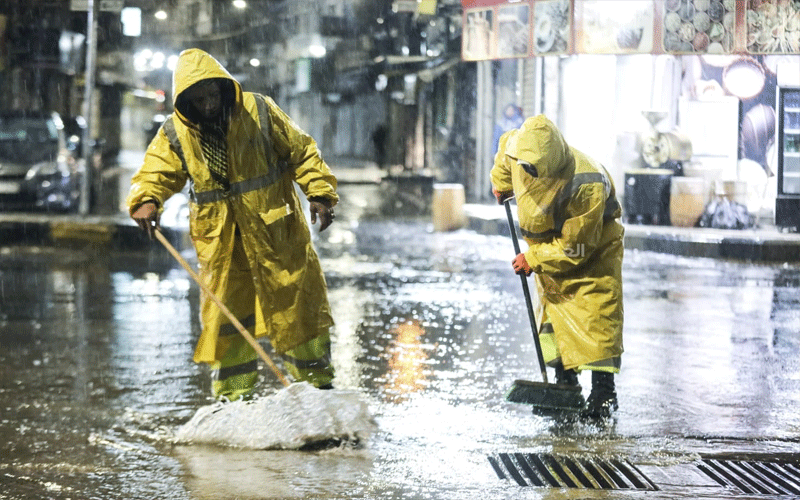 ودعا المقاولين وأصحاب المشاريع الإنشائية المبادرة بتأمين مواد البناء تجنباً لانجرافها وتسببها المباشر بإغلاق خطوط تصريف مياه الأمطار.