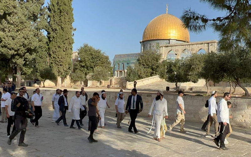 وقالت دائرة الأوقاف الإسلامية في القدس المحتلة في بيان،إن عشرات المستوطنين اقتحموا المسجد الأقصى من جهة باب المغاربة بحراسة مشددة من شرطة الاحتلال الإسرائيلي، ونفذوا جولات مشبوهة في باحاته، وأدوا طقوسًا تلمودية في المنطقة الشرقية منه وسط حالة من الغضب والغليان سادت في المكان.