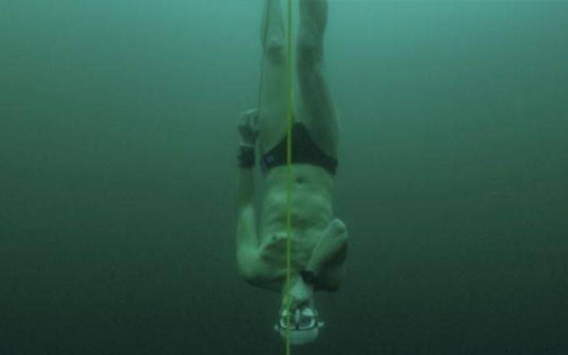 يغوص لأكثر من 50 مترا في بحيرة متجمدة بـ'نفس واحد'