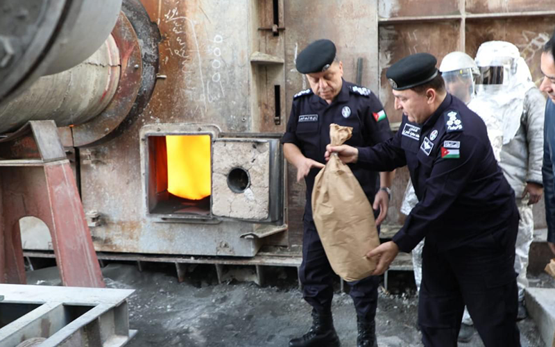 يشار إلى أن عملية الإتلاف تمت بإشراف لجنة خاصة ترأسها مساعد مدير الأمن العام للسير وشؤون الأجانب ومدير إدارة المختبرات والأدلة الجرمية ، ومدير إدارة مكافحة المخدرات ، ومدعي عام محكمة أمن الدولة ، حيث تم إتلافها في أفران خاصة تصل حرارتها إلى ألف درجة مئوية لصهرها ، وتفتيتها وتجريد نواتجها من الخصائص المخدرة .
