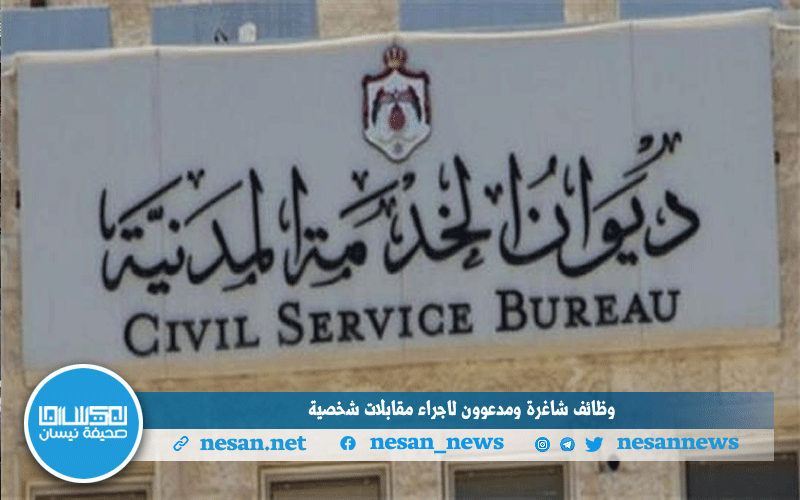 نيسان ـ أعلنت عدد من الوزارات والمؤسسات الحكومية اليوم الخميس، بالتنسيق مع ديوان الخدمة المدنية، عن حاجتها لتعبيئة وظائف شاغرة، كما دعت عدد من المرشحين لإجراء المقابلات الشخصية .