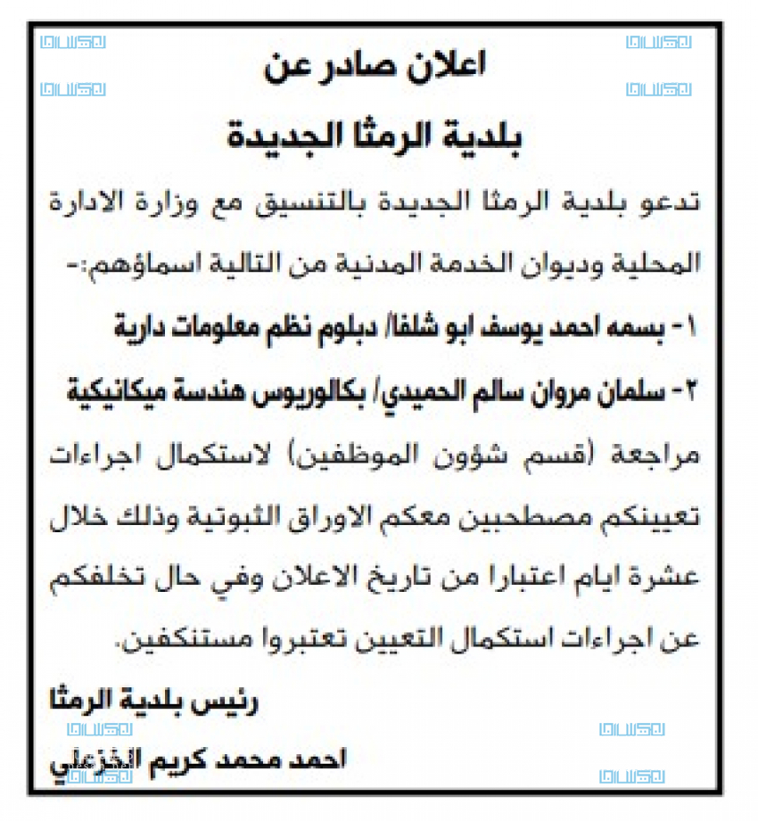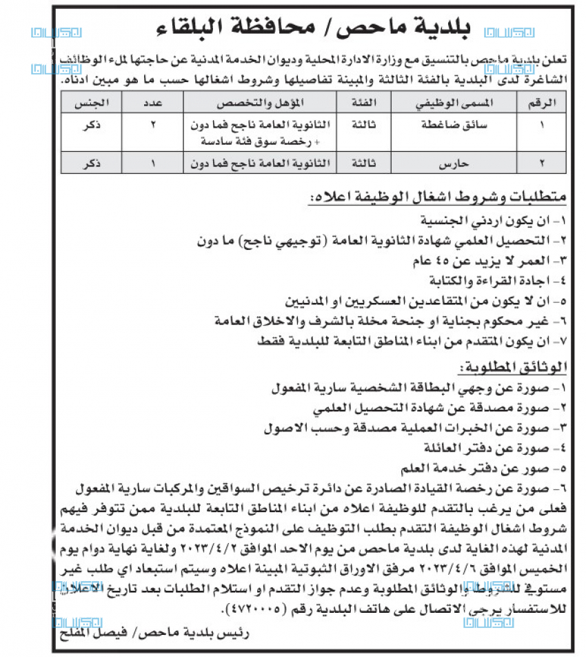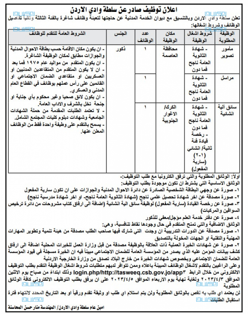 كما أعلن عن وظائف شاغرة بالتنسيق مع الوزارات والمؤسسات الحكومية .