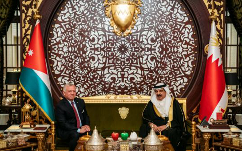وأثنى العاهل البحريني على الدور المحوري الفاعل الذي يضطلع به الأردن بقيادة جلالة الملك عبدالله الثاني في الدفاع عن مصالح الأمة العربية ونصرة قضاياها وعلى رأسها القضية الفلسطينية وتعزيز منظومة العمل العربي المشترك.