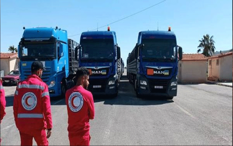 وقال مدير مركز نصيب الحدودي السوري المهندس شادي أبازيد، إن الشاحنات تحمل مواد طبية وغذائية وأغطية، مقدمة من الحكومة الأردنية للمحافظات السورية المتضررة من الزلزال، وتسلمها الهلال الأحمر العربي السوري.