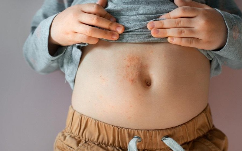 ويتميز الطفح الجلدي بأنه يمر بثلاث مراحل، الأولى عبارة عن طفح فقاعات وردية أو حمراء وتنتشر على مدار عدة أيام ثم تتحول إلى حويصلات مملوءة بمادة سائلة ثم تبدأ تتفتح ويخرج منها السائل.