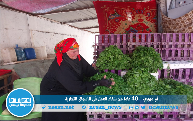 وتضيف أم مهيوب أن اثنين من أولادها توفيا بمرض السرطان تاركين أبنائهم التي تكفلت بالنفقة عليهم مما تجنيه من دخل خلال عملها على "بسطة" تبيع عليها البقدونس والجرجير والخس والنعنع.