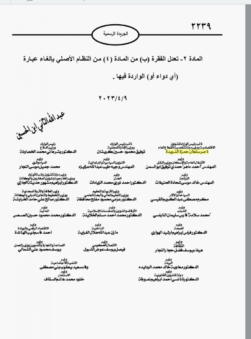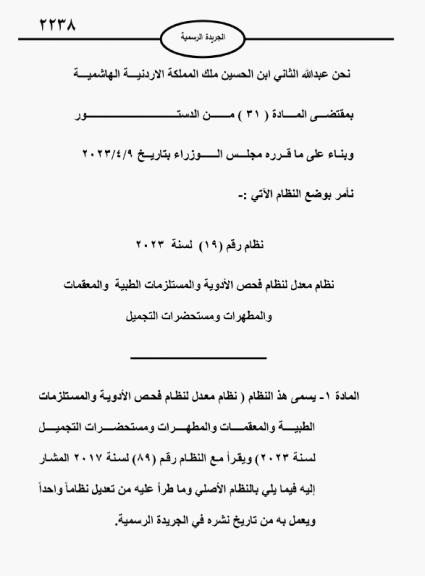 نيسان ـ صدر في عدد الجريدة الرسمية اليوم الثلاثاء، نظام معدل لنظام فحص الأدوية والمستلزمات الطبية والمعقمات، والمطهرات ومستحضرات التجميل.