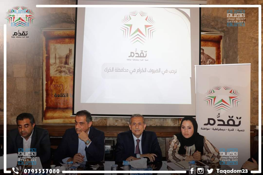 حزب تقدم يواصل جولاته الحوارية في المحافظات لتعريف الشعب ببرنامجه ونهجه، ويعقد لقاءً مميزًا مع قطاعات شبابية ونسائية وهيئات مجتمع محلي في الكرك، ويستعرض أهداف ومنهجيات الحزب وأولوياته وبرنامجه المستقبلي والهيكل التنظيمي له، ويؤكد على أهمية تشكيل الأحزاب والانتساب لها لتغيير النهج في تشكيل الحكومات البرامجية، ويؤكد على أن الانتساب للأحزاب لا يتعارض مع دور العشيرة كركيزة ورافعة مجتمعية أساسية.
