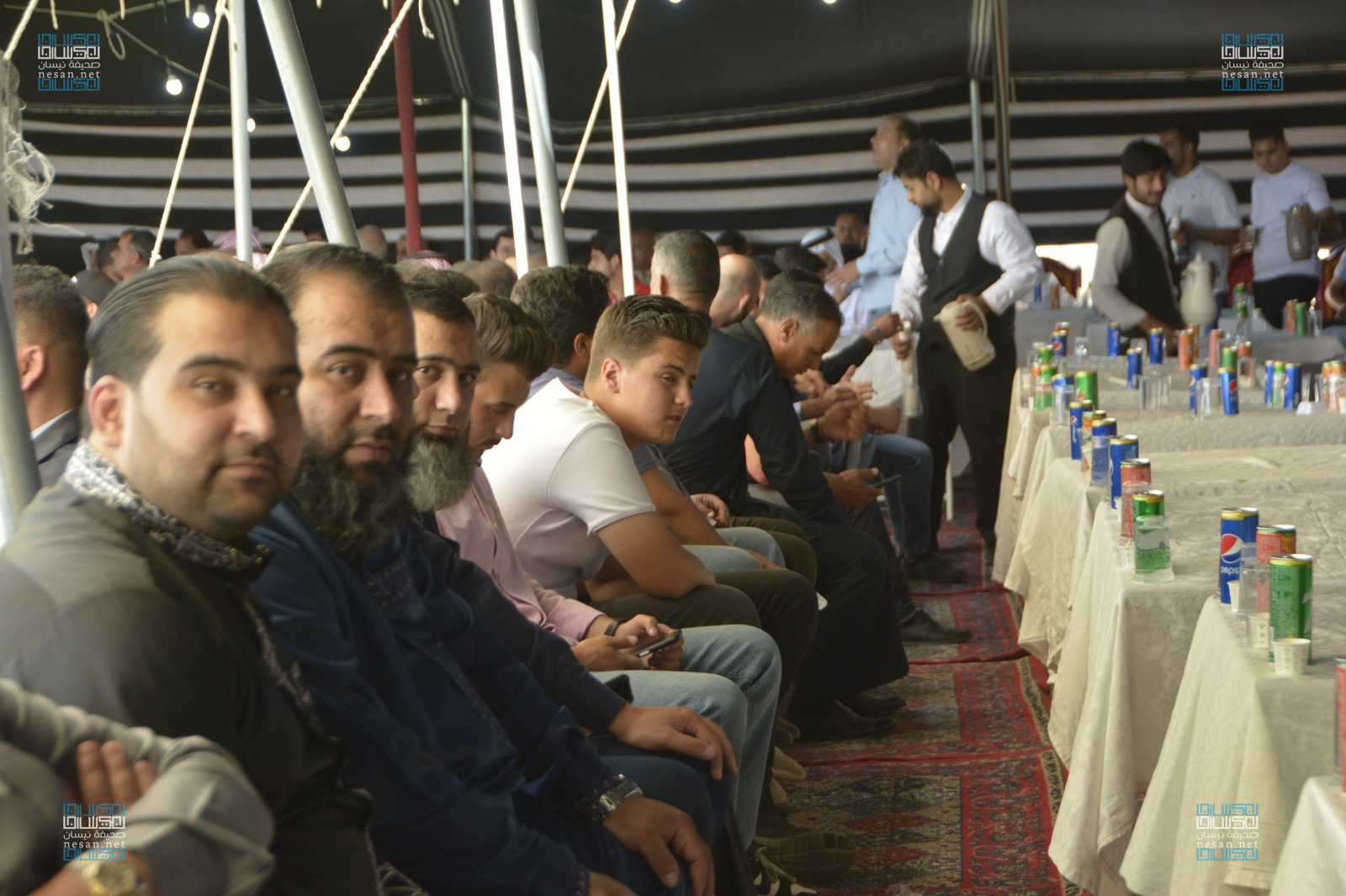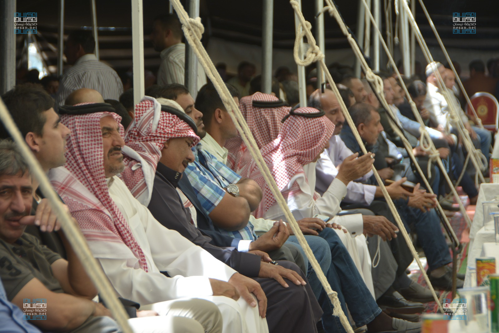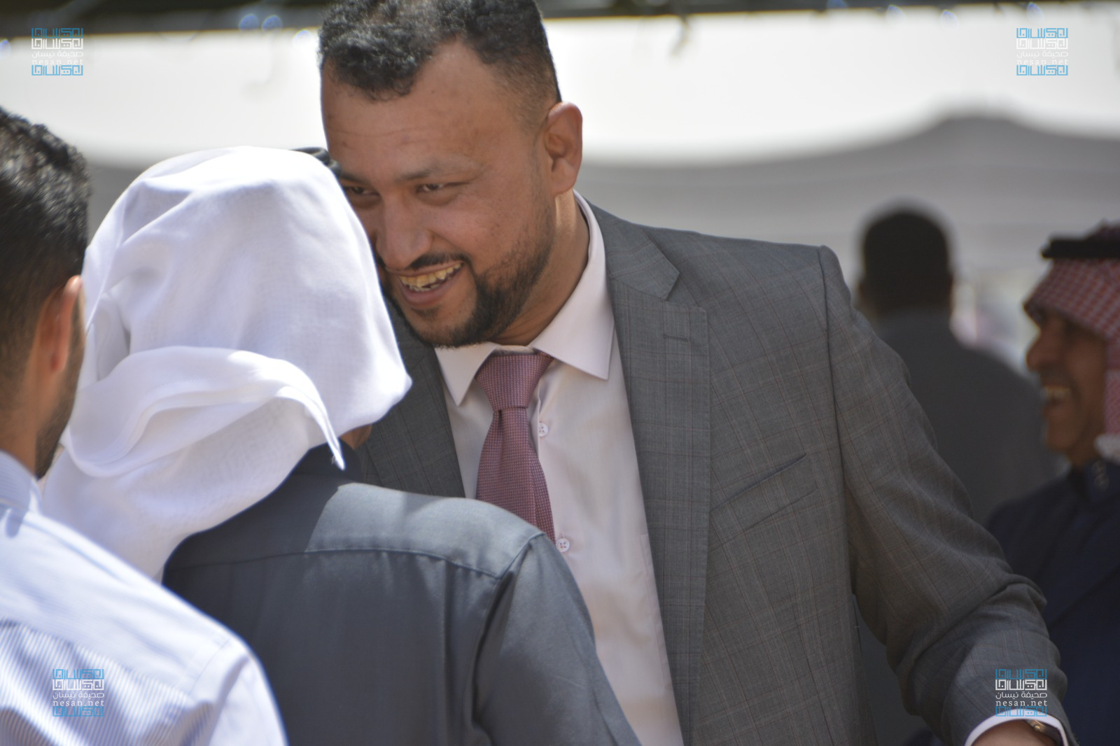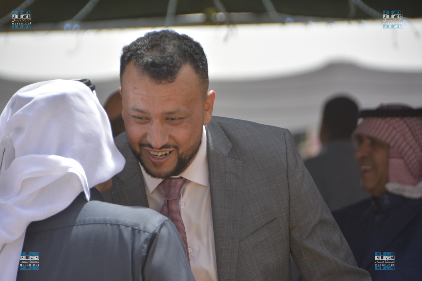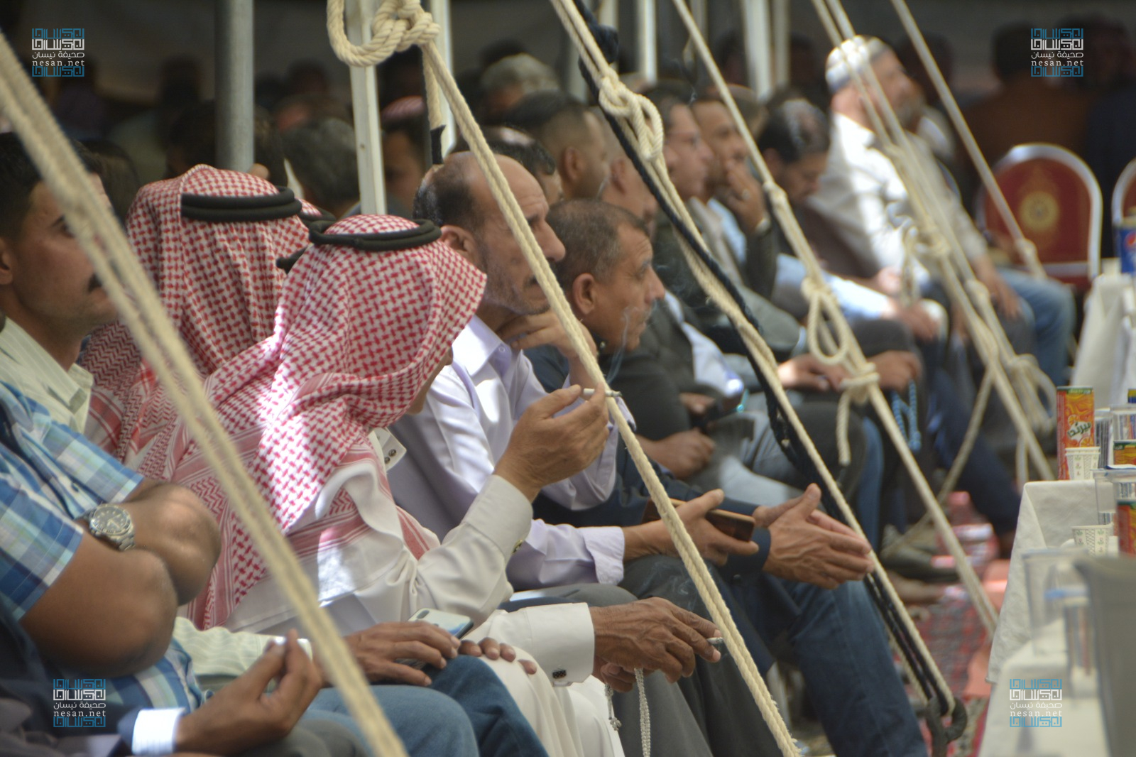 ظهيرة الجمعة انتصبت بيوت الشعر على السفوح، وفاحت رائحة القهوة العربية، فيما اصطف الرجال من أهل العريس بقلوب محبة، وبوجوه فرحة باسمة بقدوم ضيوف قبيلة بني حميدة، في مشهد كريم تفوح منه رائحة العز والجاه الحقيقي.