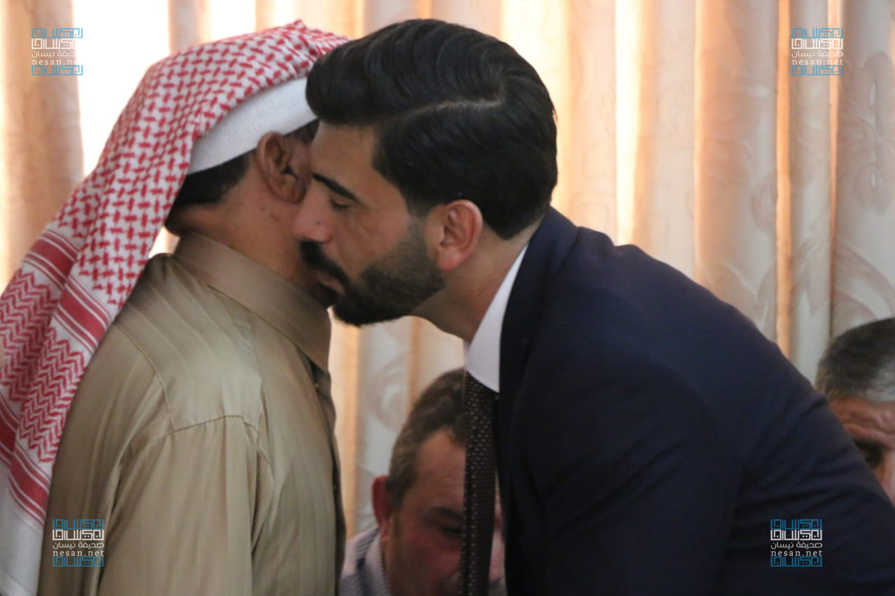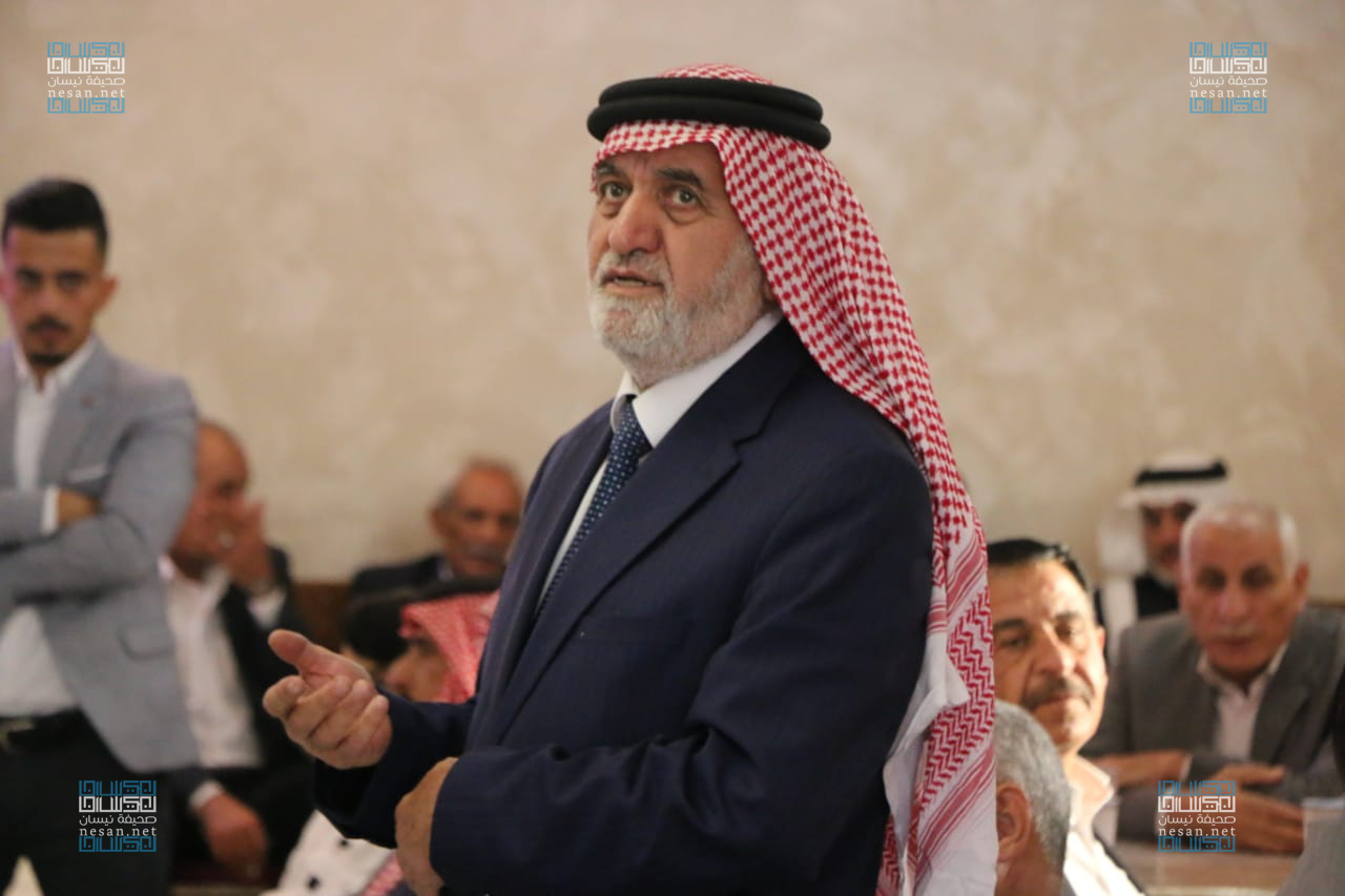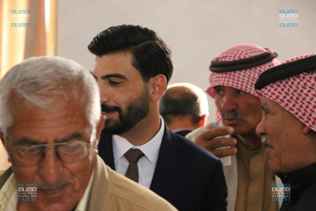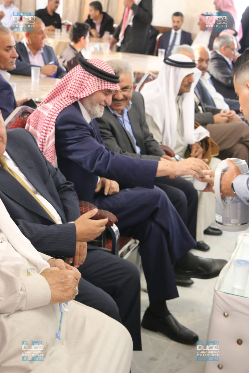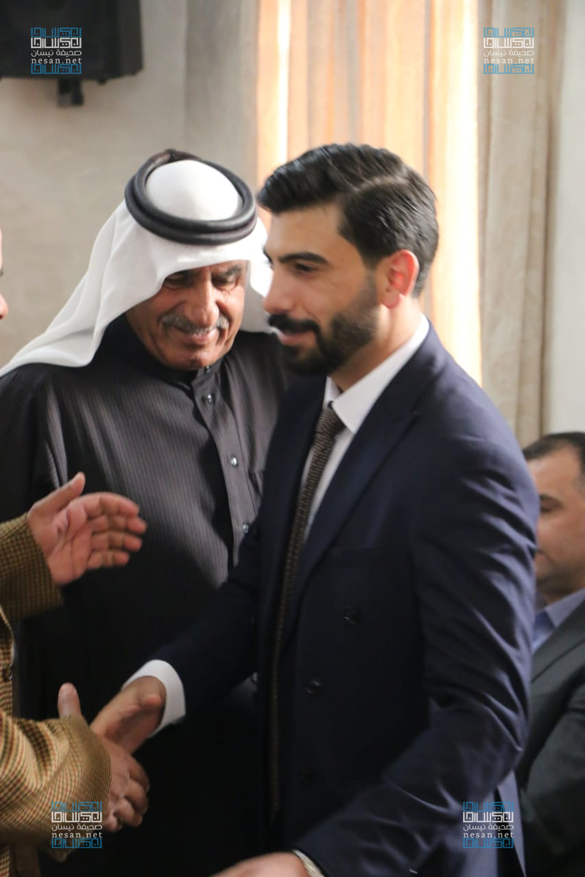 وتقدم الشيخ سالم الفلاحات نيابة عن عشيرة الهاشم بطلب يد العروس فيما رد والد العروس العميد المتقاعد حسن السمارات بالايجاب، بعد الترحيب بالجاهة الكريمة .