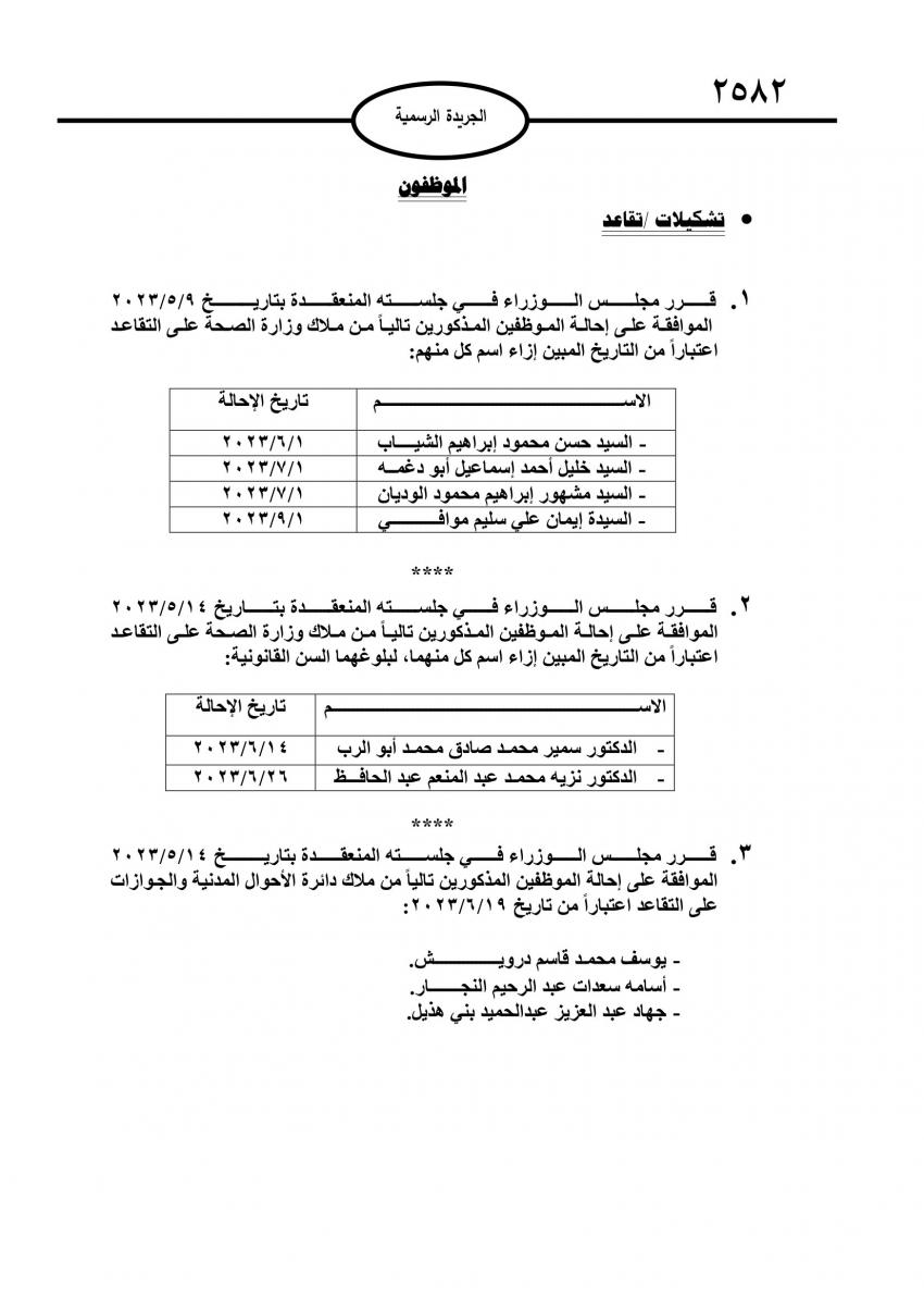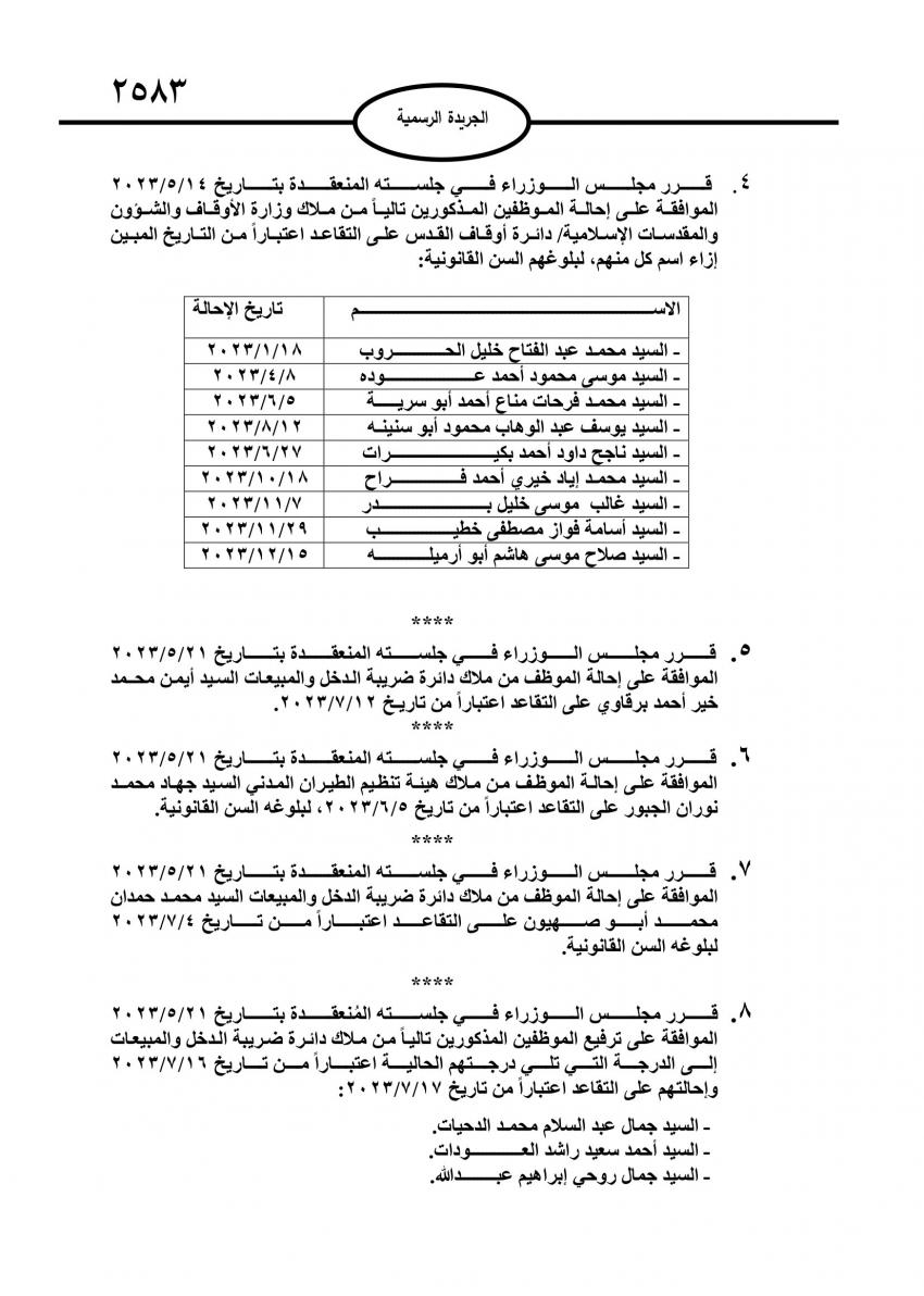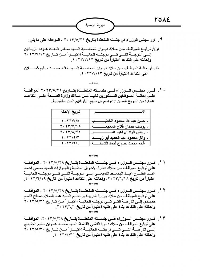 نيسان ـ صدر في عدد الجريدة الرسمية اليوم الاربعاء قرارات مجلس الوزراء باحالة عدد من موظفي الدولة إلى التقاعد، وانهاء خدمات اخرين.