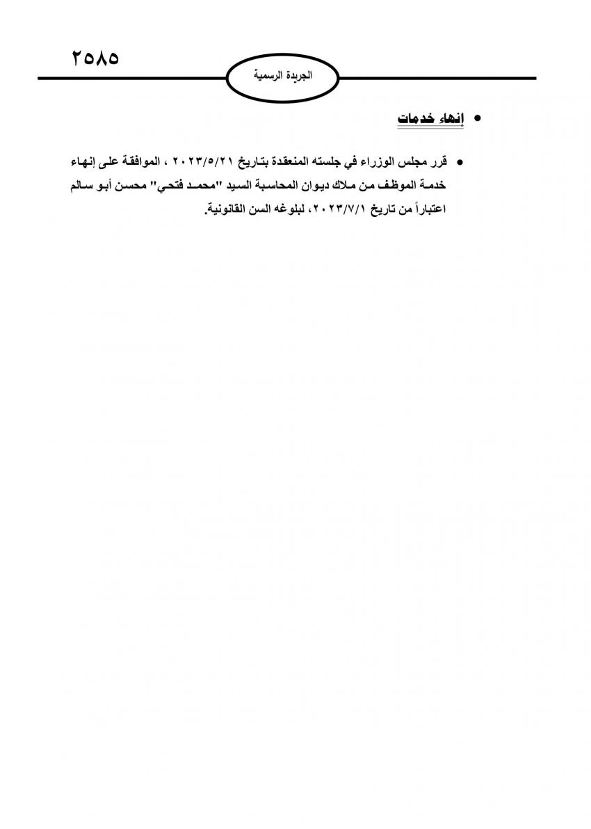 قرارات مجلس الوزراء بإحالة موظفين على التقاعد وإنهاء خدمات آخرين في الجريدة الرسمية.