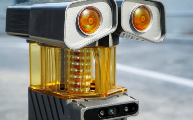 والروبوتات مُجهزة بكاميرا 360 درجة توفّر لقطات للشرطيين في غرفة تحكم.