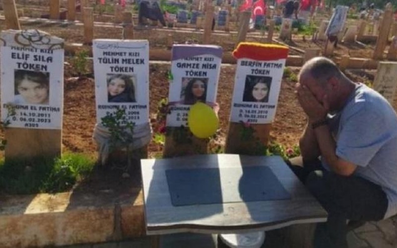 فقدهن بالزلزال .. تركي يقضي العيد عند قبور بناته الأربعة