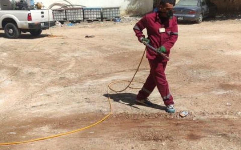 وقالت " سيتم على مدار اسبوعين عمليات رش وتعقيم للمواقع وبواقع مرتين يومياً صباحاً ومساءً بمعقمات يتم رشها على الارضية والحاويات لقتل البكتيريا والجراثيم لحفظ السلامة والصحة العامة " .