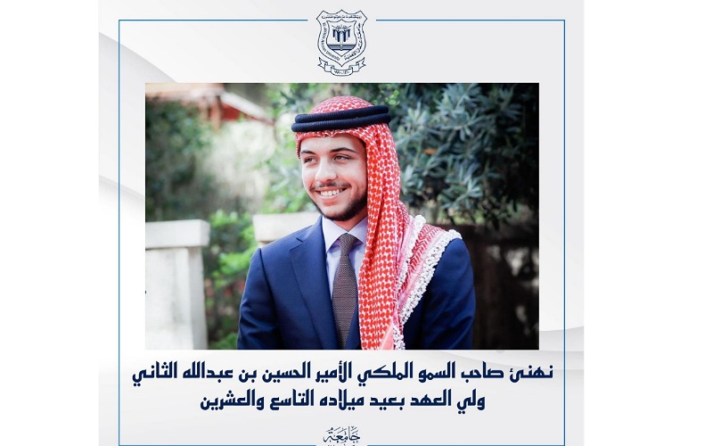 جامعة عمان الاهلية تهنئ ولي العهد بعيد ميلاده التاسع والعشرين