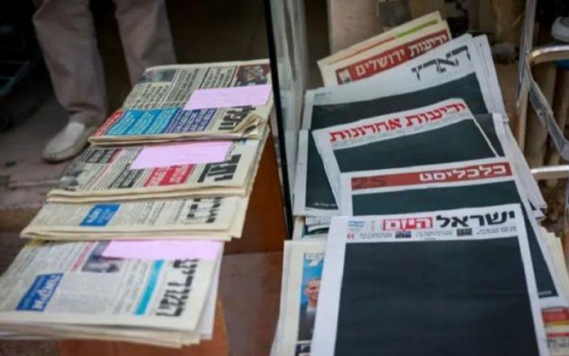 ظهرت عدد من الصفحات الرئيسية للصحف في إسرائيل وهي سوداء، وخلت من أي عناوين باستثناء جملة: "يوم أسود للديمقراطية الإسرائيلية"، لكن بنفس الصفحة كان مكتوبا بالبنض الصغير عبارة: "إعلان"، في إشارة إلى أن الحداد على الديمقراطية مدفوع الأجر.