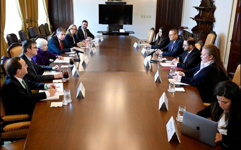نيسان ـ اجتمع وفد من الحكومة الاردنية برئاسة وزير المالية الدكتور محمد العسعس مع وزيرة الخزانة الامريكية جانت يلن الثلاثاء في واشنطن، وضم الوفد وزيرة التخطيط والتعاون الدولي زينة طوقان ومحافظ البنك المركزي الأردني د. عادل شركس وامين عام وزارة المالية د. عبدالحكيم الشبلي.
