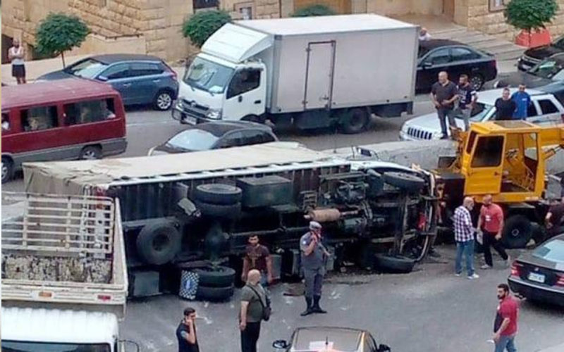 انقلاب شاحنة ذخائر وإطلاق نار في لبنان يخلف قتيلين