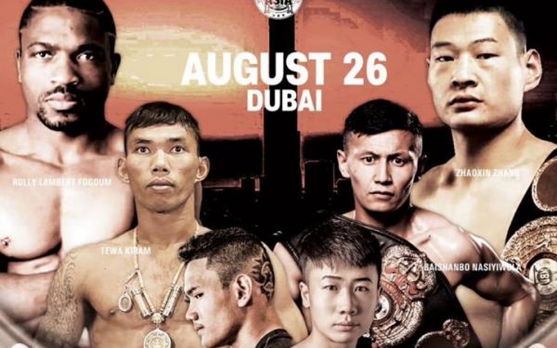 وسيواجه التايلاندي "بلاك ماجيك" تيوا كيرام (49 انتصار منهم 34 بالضربة القاضية مع خسارة وحيدة) ، بطل رابطة الملاكمة العالمية في وزن الوسط الآسيوي (69.85 كجم) ، البطل "المدمر" باي سانبو (17 انتصار 7 منها بالضربة القاضية مع 5 هزائم وتعادل).