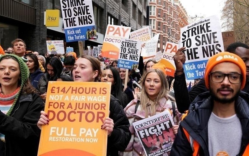 نيسان ـ عاد آلاف الأطباء في المستشفيات البريطانية، الجمعة، للإضراب مجدداً لمدة أربعة أيام للمطالبة بتحسين الأجور في مواجهة التضخم.