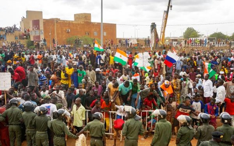 واستمر أمس احتشاد آلاف المحتجين خارج قاعدة عسكرية في نيامي تضم جنوداً فرنسيين، مطالبين بانسحاب القوات الفرنسية بالكامل بعد الانقلاب العسكري، في حين رفضت فرنسا الاعتراف به.