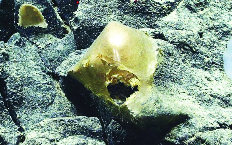 وأفادت الإدارة الوطنية للمحيطات والغلاف الجوي التي تتولى إجراء هذه الأبحاث في مذكرة أن العلماء «احتاروا في شأن تحديد ماهية هذا الجسم بينما كانت الكاميرات تكبّر صورته، وراوحت ترجيحاتهم الأولى بين احتمال كونه عبارة عن خطافات لإسفنجة نافقة، أو قطعة مرجان أو قشرة بيضة».