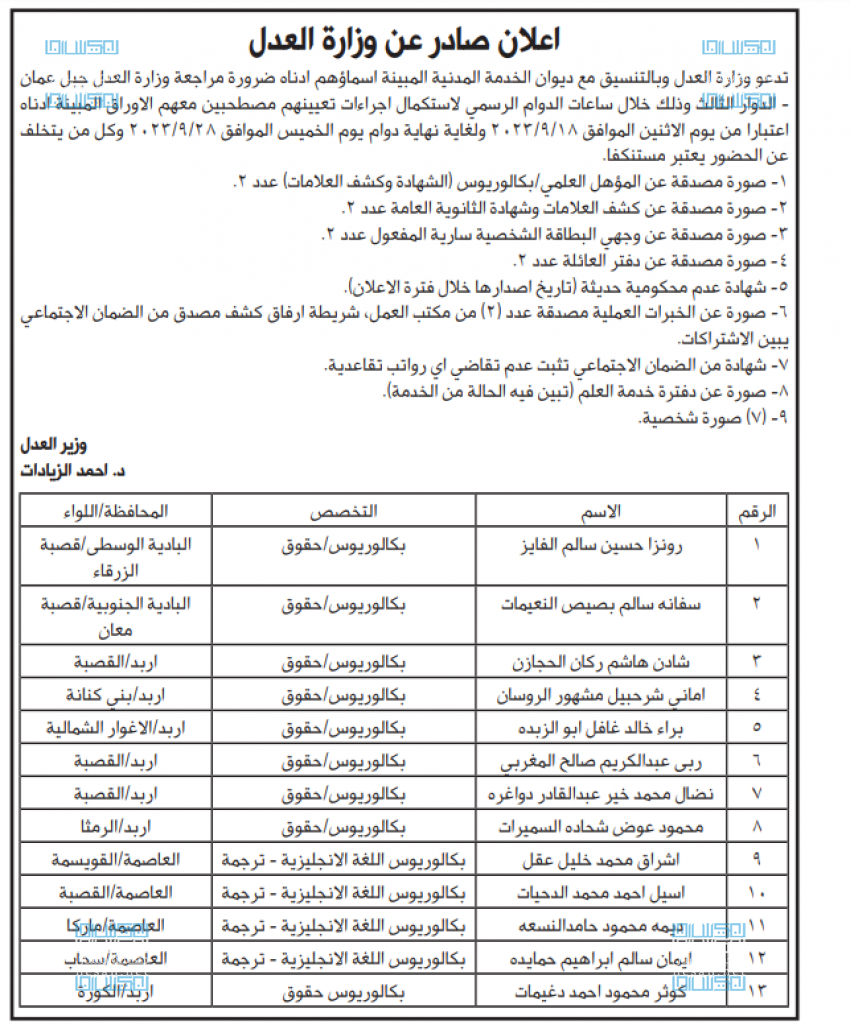 مدعوون للتعيين في عدد من الوظائف (أسماء)