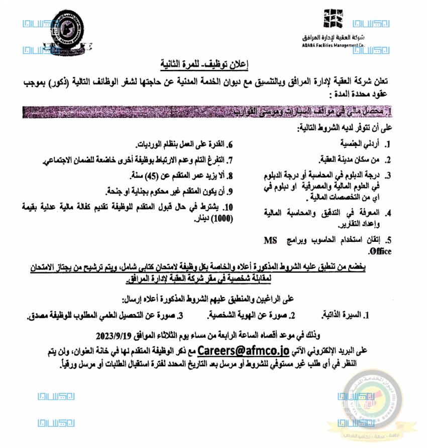 كما أعلن عن وظائف شاغرة بالتنسيق مع الوزارات والمؤسسات الحكومية .