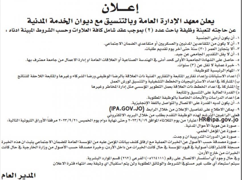 كما أعلن عن وظائف شاغرة بالتنسيق مع الوزارات والمؤسسات الحكومية .