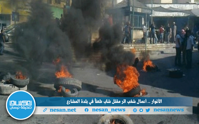 نيسان ـ اندلعت اعمال شغب عقب مقتل شاب عشريني مساء أمس الخميس طعناً في بلدة المشارع بلواء الاغوار الشمالية. حسبما قالت مصادر أمنية.
