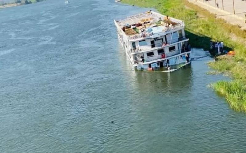 نيسان ـ تعرض فندق عائم لغرق جزئي في النيل جنوب مصر، السبت، أثناء مروره بالممر الملاحي النهري لمحافظة المنيا.