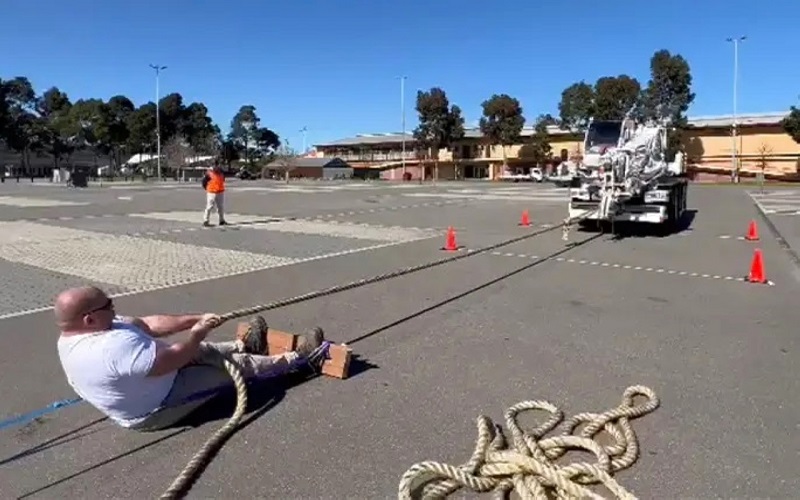 رجل خارق يسحب رافعة بوزن 20 طناً