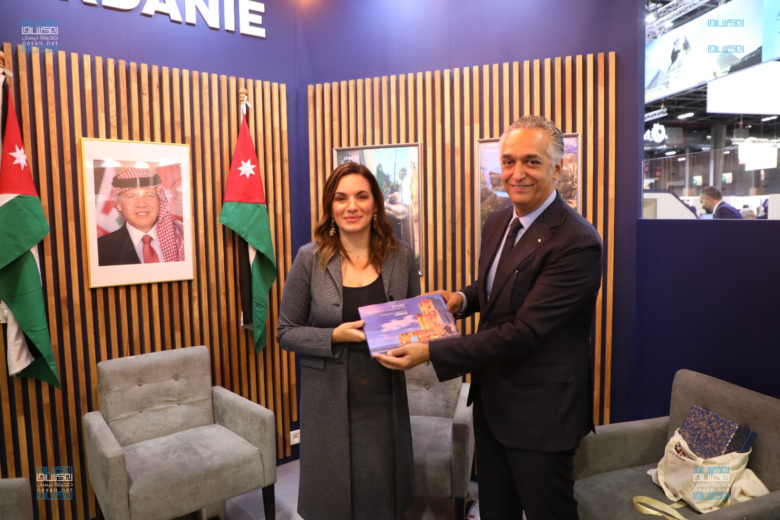 وزارت وزيرة السياحة الفرنسية الجناح الأردني في المعرض وأعربت عن امتنانها لما تقوم به المملكة من إثراء للقطاع السياحي العالمي ومشاركاته الغنية بالمعارض الدولية وخصوصا معرض توب ريزا.