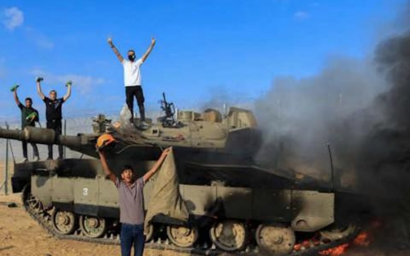 وأطلقت المقاومة الفلسطينية في قطاع غزة مئات الصواريخ في رشقات مكثفة صوب مستوطنات ومدن الاحتلال، تزامنًا مع تسلل عشرات المقاومين إلى المستوطنات المحيطة، بطائرات شراعية ومن تحت الأرض، وبرا.
