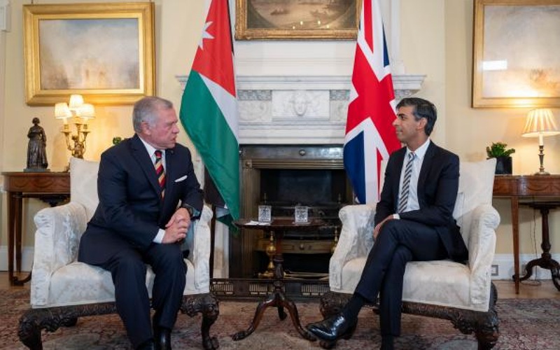 نيسان ـ أكد جلالة الملك عبدالله الثاني لدى لقائه رئيس الوزراء البريطاني ريشي سوناك أن منع الغذاء والمياه والكهرباء عن المدنيين الأبرياء في قطاع غزة جريمة حرب يجب أن يدينها العالم ويرفضها.