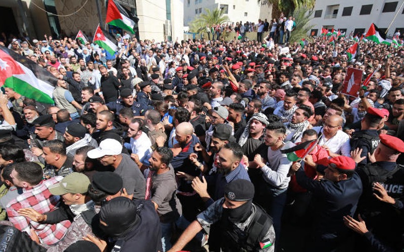 الأردن في العاصمة عمان احتشد المئات في مسيرات بمناطق مختلفة، وفي معظم المحافظات، مطالبين بوقف العدوان على قطاع غزة واستمرار استهداف الفلسطينيين.