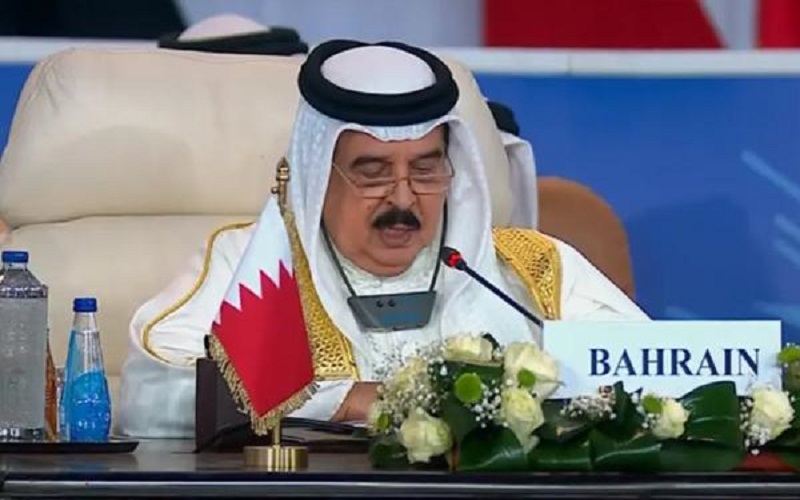 نيسان ـ أعرب العاهل البحريني الملك حمد بن عيسى، عن شكره وتقديره إلى الرئيس عبدالفتاح السيسي على دعوته لعقد هذه القمة الدولية الإقليمية الهامة، مبينًا أنه لن يكون هناك استقرار في الشرق الأوسط دون تأمين الحقوق المشروعة للشعب الفلسطيني وصولا إلى السلام العادل والشامل والمستدام في المنطقة.