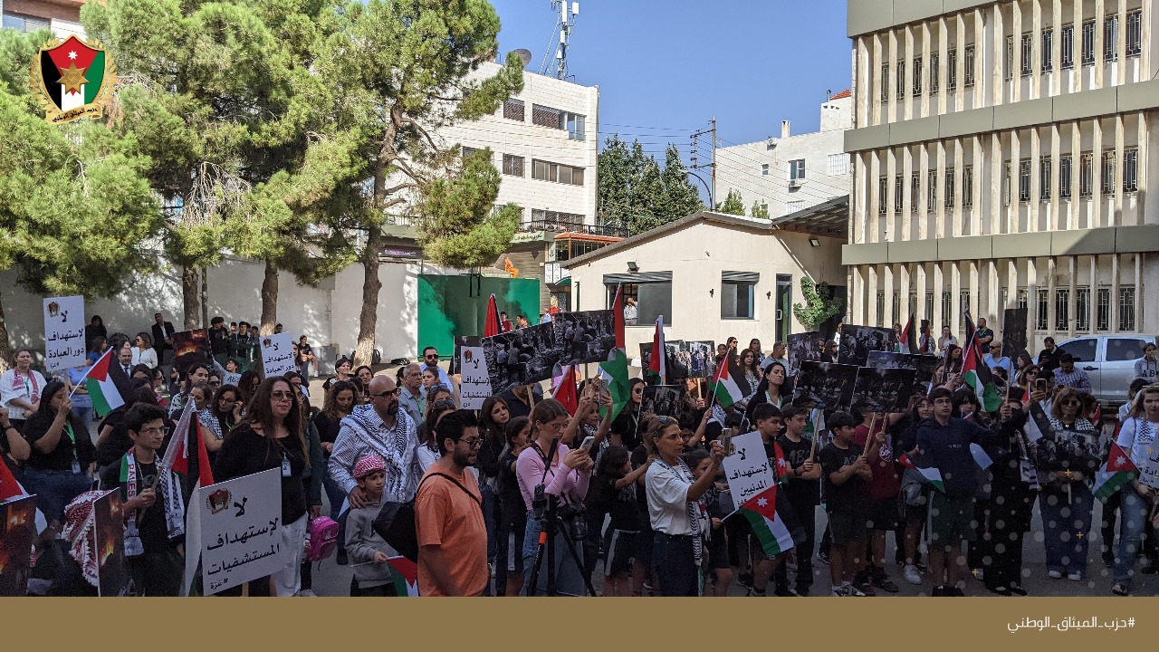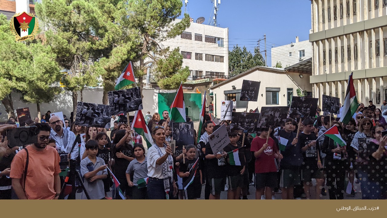 نيسان ـ نظم حزب الميثاق الوطني وقفة احتجاجية بالتعاون مع المدرسة المعمدانية في العاصمة عمان اليوم الاثنين احتجاجا على ما اقترفته يد الاحتلال الاسرائيلي من مجزرة بشعة بحق الابرياء العزل داخل مستشفى المعمداني في قطاع غزة، ذهب ضحيتها المئات كوادر طبية والاطفال والنساء والشيوخ.