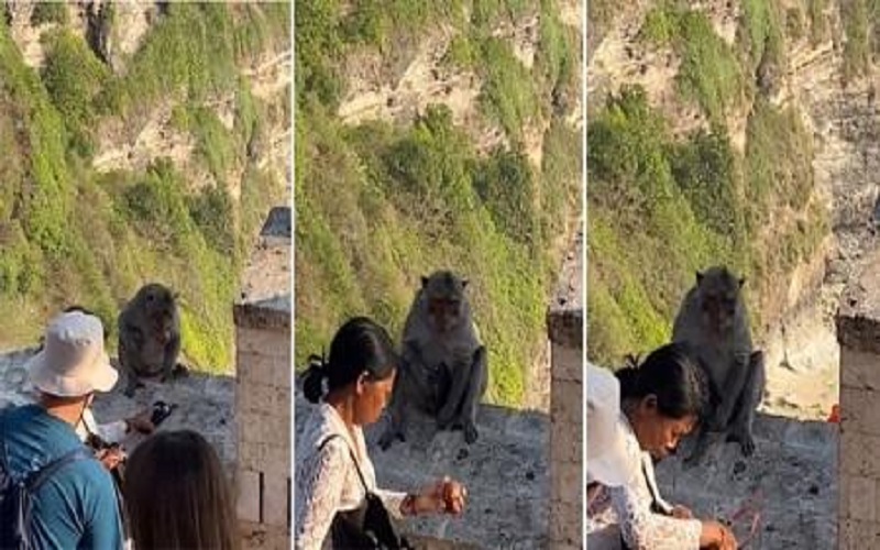 نيسان ـ انتشر على مواقع التواصل الاجتماعي مقطع فيديو لسائحة في بالي تقع ضحية قرد.