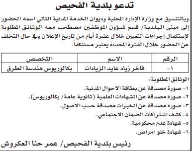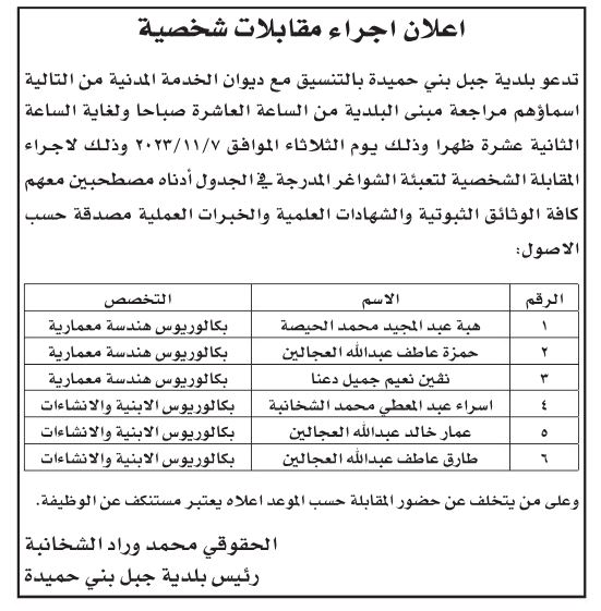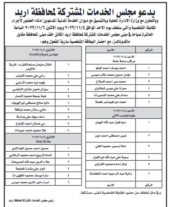 وظائف شاغرة ومدعوون للمقابلات الشخصية (أسماء)