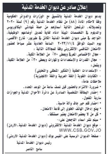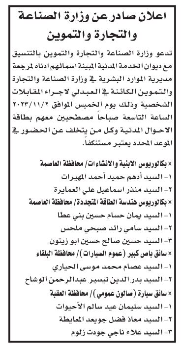 نيسان ـ أعلنت عدد من الوزارات والمؤسسات الرسمية والبلديات بالتنسيق مع ديوان الخدمة المدنية اليوم الثلاثاء، عن توفر عدد من الشواغر الوظيفية ، كما دعت مرشحين لإجراء المقابلات الشخصية.