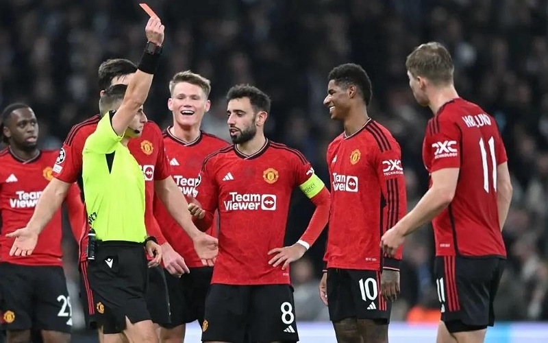 وطرد راشفورد بعد دهسه على كاحل المنافس أثناء محاولته تأمين الكرة وهو ما أغضب تن هاغ الذي وصف القرار بأنه كان "قرارا قاسيا".
