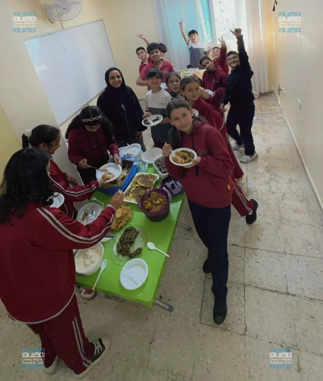 و تعرف الطلبة بإشراف المعلمة لبنى ناجي على الأطباق الشعبية المتنوعة لكل بلد، وسط أجواء سادها الفرح والاستمتاع.