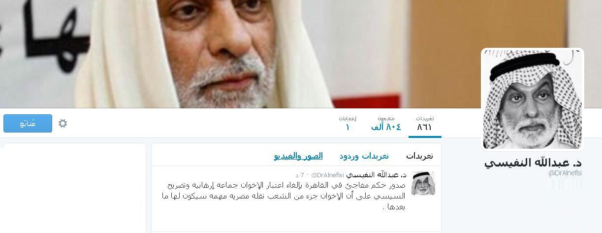 توقع المفكر الكويتي عبدالله النفيسي صدور حكم مفاجئ في القاهرة بإلغاء اعتبار الإخوان جماعه إرهابية.