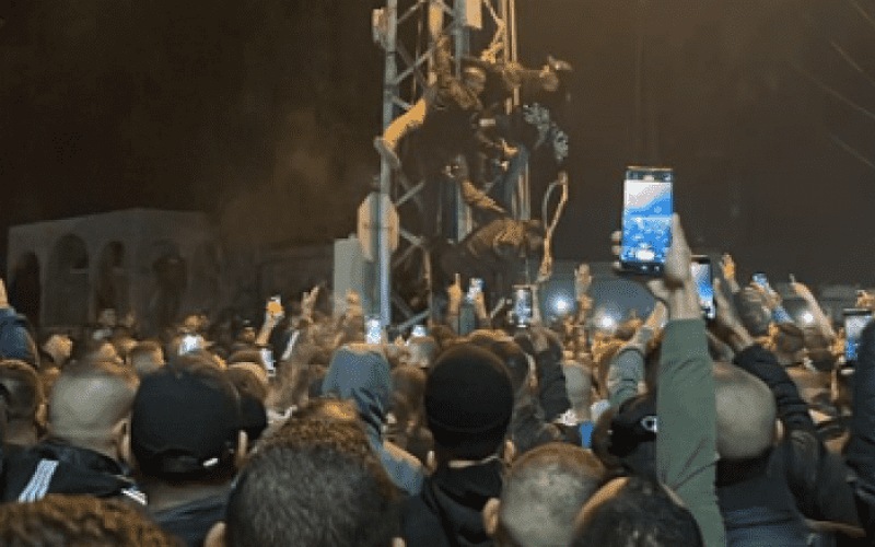 وأظهرت لقطات أخرى جثتين معلقتين على جدار وعمود كهرباء أمام حشود غاضبة.